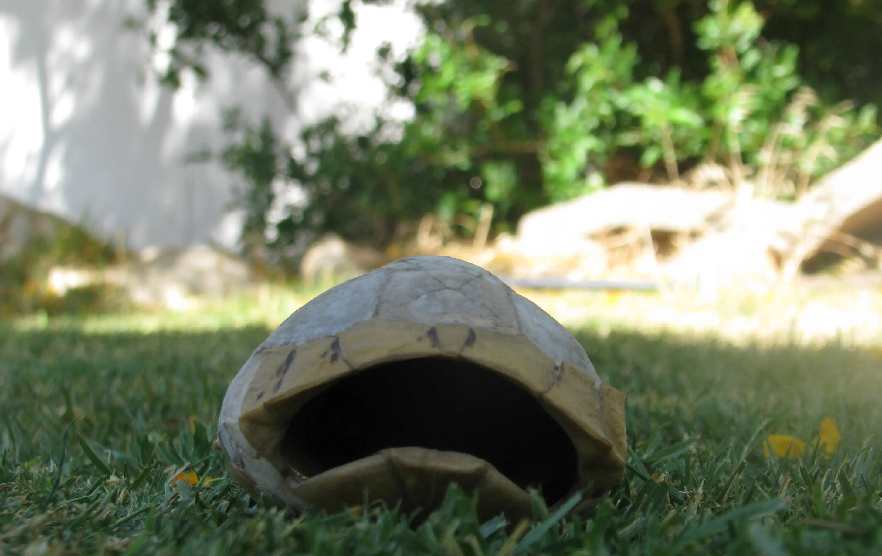 באופק יש ירוק, יש עצים מלבלבים אבל באמצע, בלב -יש חלל שחור וריק צב בלי בית, בית בלי צב, צב בלי גב