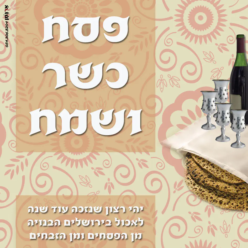ממש יפה. הערה קטנה: אני לא מבין מדוע בהרבה תמונות וכו' הקשורות לפסח שמים בתמונה ארבע כוסות. הרי אף אחד לא לוקח לידו ארבע כוסות ממש, אלא כוס אחת שממלאים אותה ארבע פעמים. לכן מספיק לענ"ד כוס אחת בתמונה.