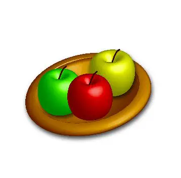 התפוח השמאלי לא אמין (הצבע שלו מלאכותי מדי), והקערה עצמה - לא ממוקמת נכון מבחינת תלת מימד.