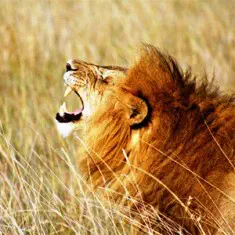 אני מניח שצוייר מן הדמיון, כי הוא נראה לי עדין מידי.לאריה יש לוע יותר גדול עם פתיחה גדולה והוא גם שואג בעיניים עצומות, וגם כף היד צריכה להיות יותר גדולה ביחס לציפורניים. בכל מקרה, ציור מאוד מושקע ויפה. תמונה להשוואה