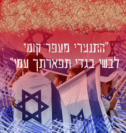 לא ברור איזה התנערות יש פה מעפר. הדגל לא עולה מן העפר. הדם-אדמה נמצא מעל לתמונה ולא למטה.