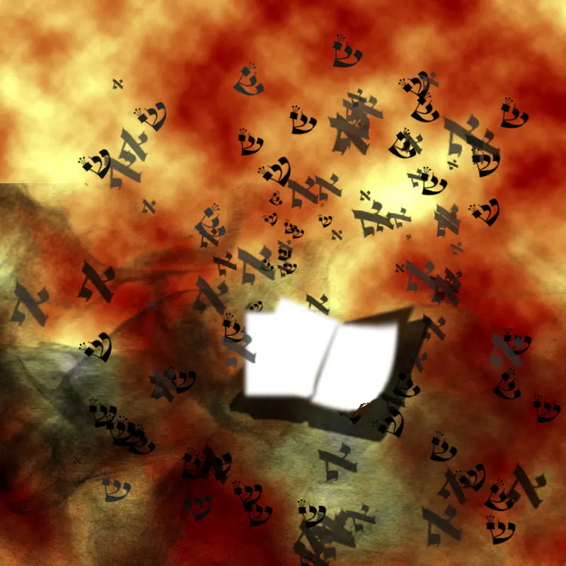 פוטושופ, בחרתי צבע צהוב ואדום, עשיתי פילטר של עננים.. יצרתי מברשת של א ומברשת של ש ושיחקתי עם המאפיינים שלהם, שיהיה הרבה אקראיות. פיזרתי.. (הורדתי מלא מברשות של עשן, והן ענקיות אז עשיתי לחיצה אחת).. הספר זה כמה ריבועים. האמת היא שאני מתחילה, אני לומדת את זה בקורס. לקח לי חצי שעה בערך וממש התלהבתי מעצמי! תודה על העידוד!