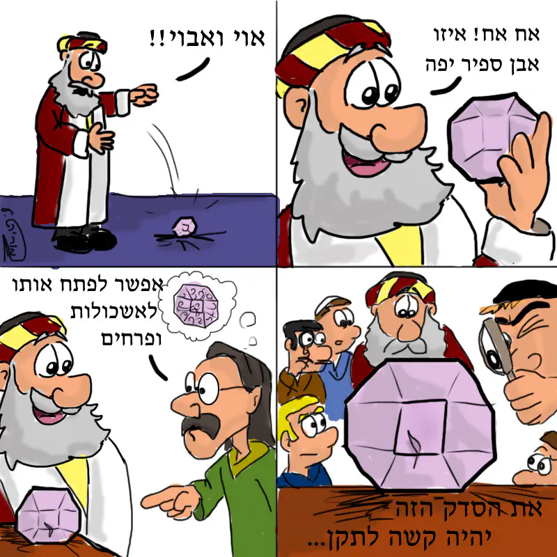 מהסדק הקטן הזה האומן עשה דברים יפים- אשכולות ציצים ופרחים, וגם יוסף, בעזרת ה', נעשה למלך בערך מהנפילה לבור, כי ה' רצה.