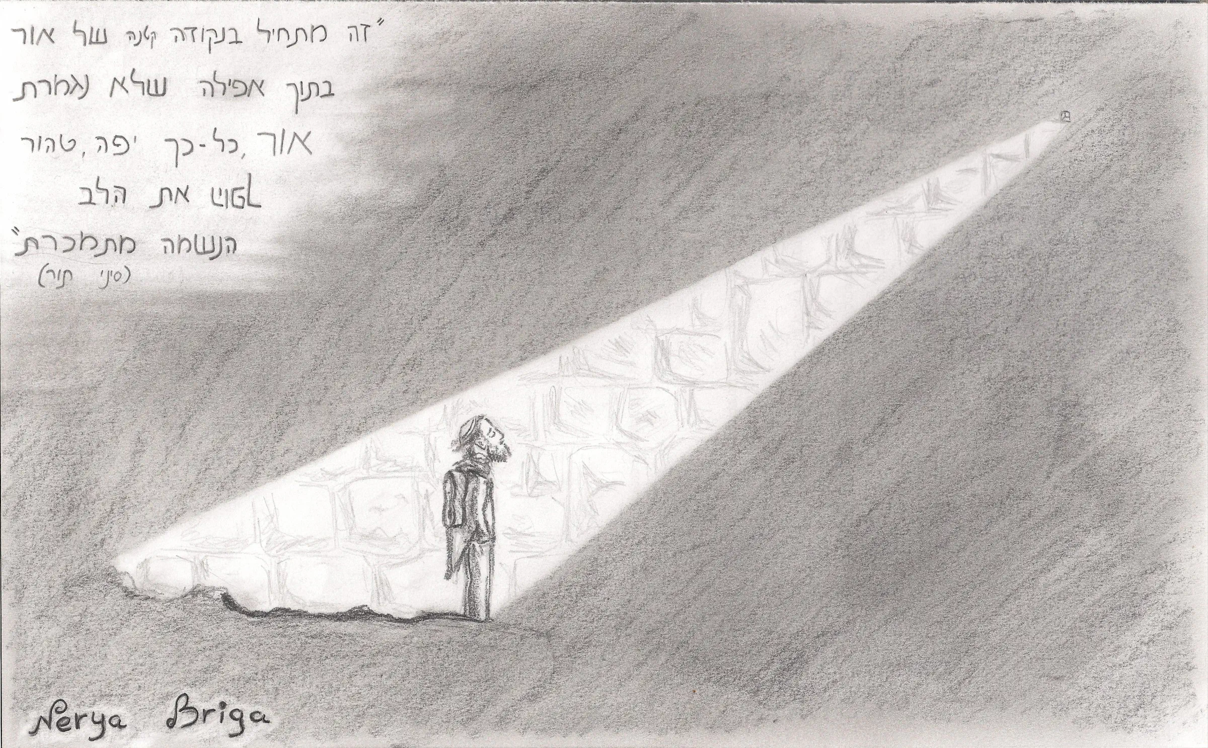 צויר במחק ועפרונות.
