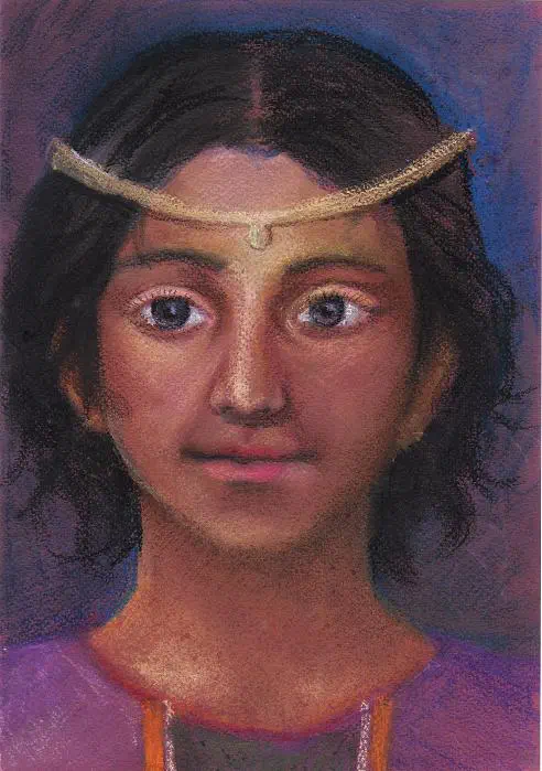 וחוץ מהעור והשער הכהים אין לה תווי פנים הודיים(פרצוף יותר מאורך אף ישר וארוך גבות גבוהות וכו'..)אז לא הייתי קוראת לציור הודית ..