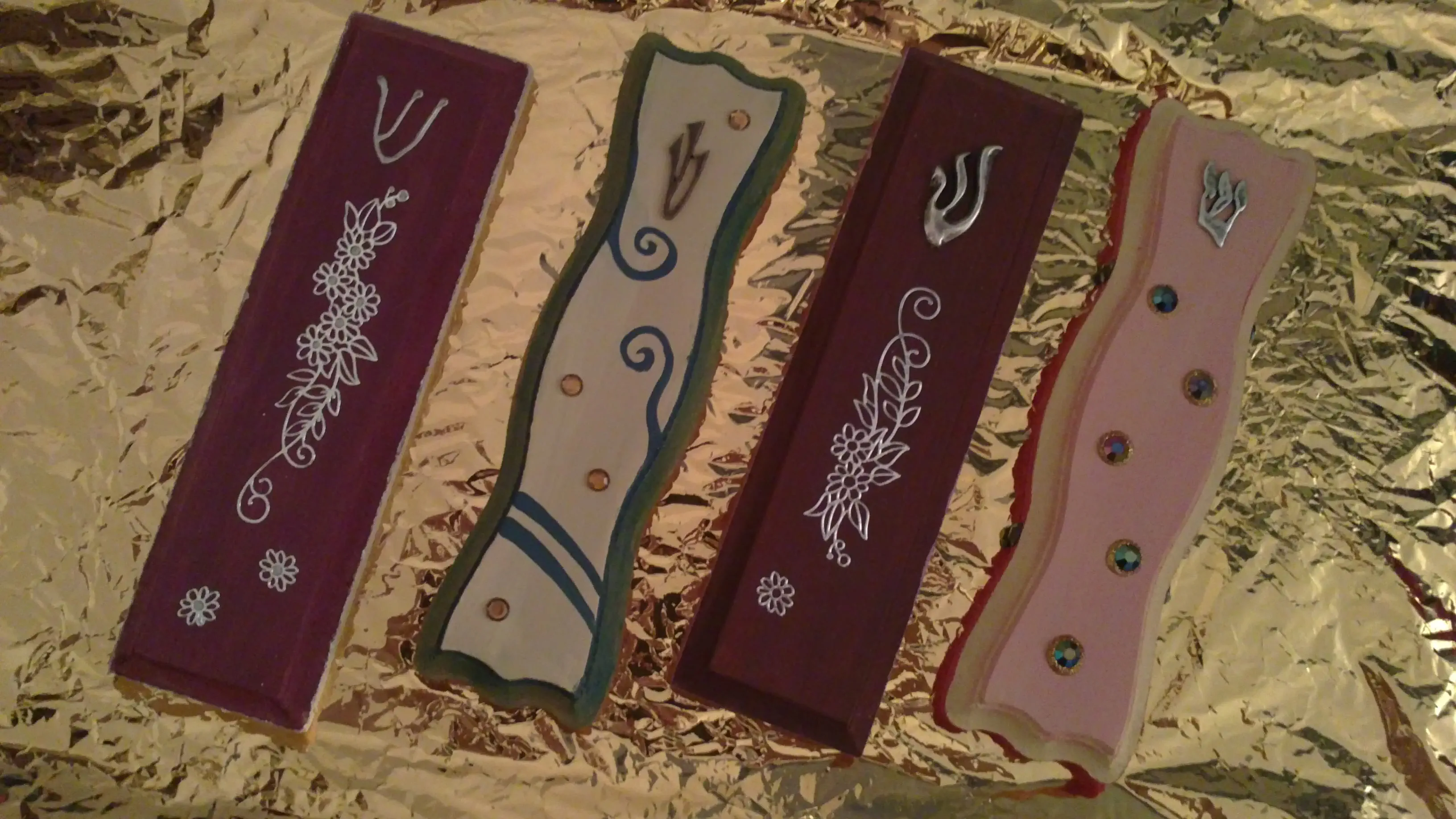 [חומרים: אקריליק על עץ mdf, בציפוי טוליפ רגיל, טוליפ זכוכית, אבנים דמויי קריסטל ומדבקות עיצוביות]