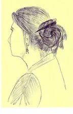 סליחה שזה על דף צהוב- הציור- ציירתי את זאת שישבה מולי בהרצאה, ע"ג דפדפת צהובה...