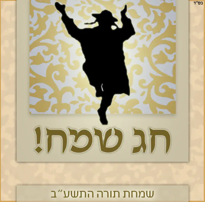 הגוונים שבחרת מתאימים אחד לשני... משדרים יהודיוּת חגיגית וקדושה... המסגרת הדומה ל"שמחת תורה תשע"ב" משאירה את הכיתוב למטה בעסק, ומצד שני האות המודרנית יחסית מתאימה להקרין רלוונטיוּת עכשווית... הצללית של החסיד שובבה, חופשית... הוא מצד אחד מונח על המסגרת, מצד שני בורח ממנה... הצורה שלו מקרינה הרבה שמחה ועליצות, והאור שמאחוריו מבליט אותו, נותן לו את הבמה. עבודה מצויינת! אשריך...