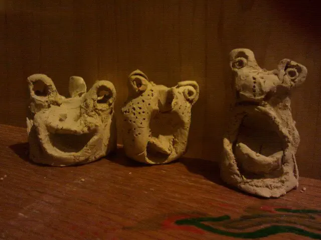 נעשה עם קיסם שיניים וידיים החומר הינו חימר פשוט.