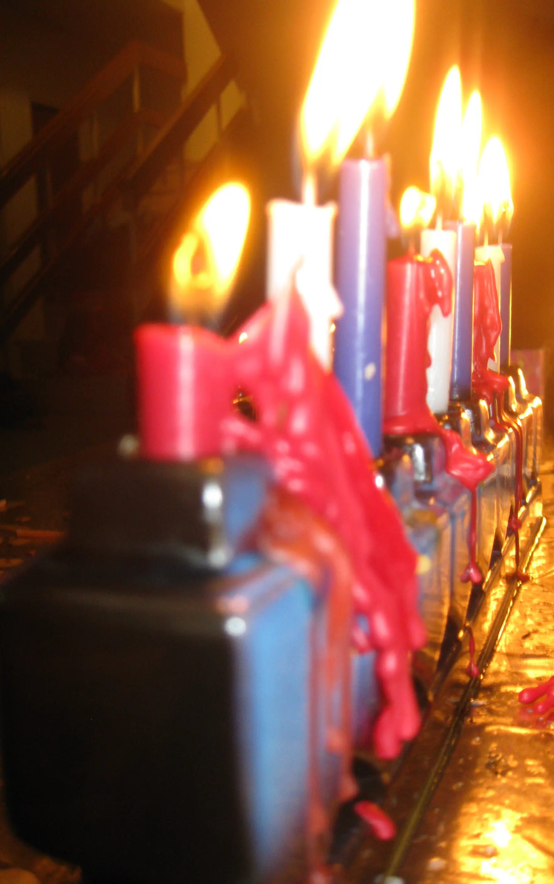 ממש אהבתי..! רק דרך ההסתכלות על זה אתה מרגיש מלא חום כאלו אתה עומד שם ומצלם... א.'מרגישים' גם את החום של הנרות בזכות האור הגדול והזווית ונורא יפה שיצא לך באמת את האור האמיתי של הנרות.. כי רוב המצלמות לא מצליחות לתפוס את זה יפה... ב.דווקא בגלל המדרגות בצד והשעווה שמטפטפת זה יוצר אווירה חמה וביתית.. בקיצור ....מהמהם!!! ממש אהבתי...