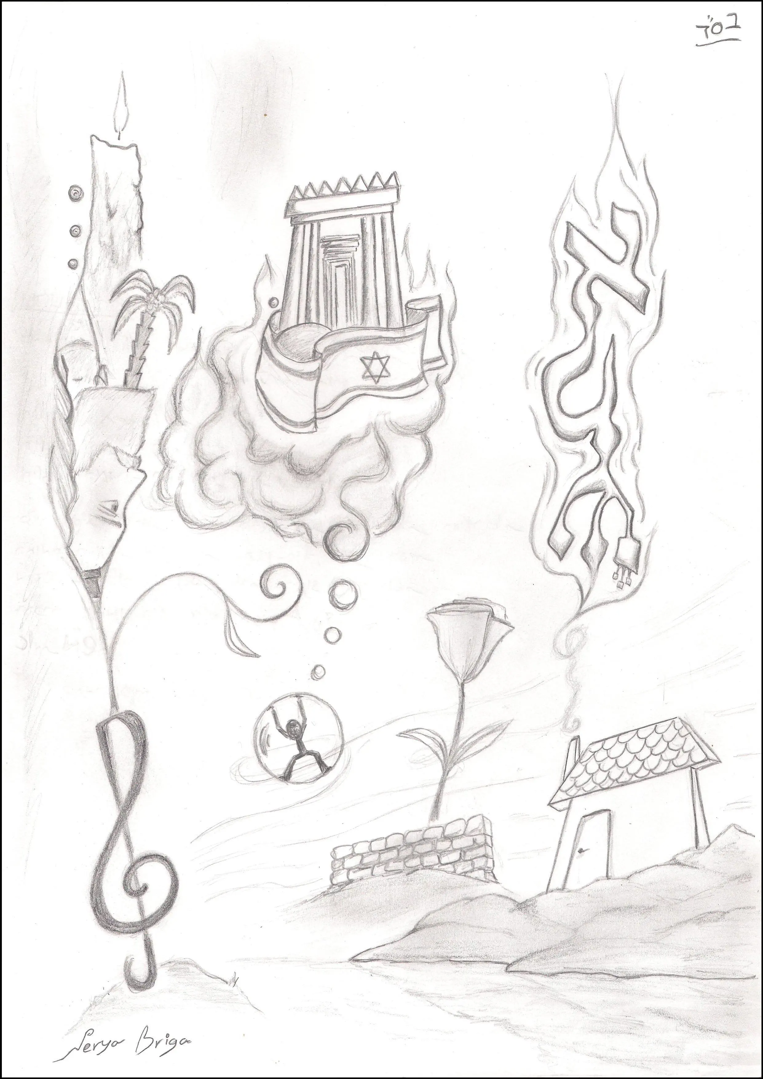 בציור ניסיתי להראות את ההשתלשלות הזו של ההוויה הא-לוהית, של הבריאה. וגם את הבועה שאנו חיים בה, את החומה שמונעת ממנו את ה"אין-סוף". את בית המקדש, את ההבנה וההכרה שנשמת כל אדם היא בעצם נר ה'. את ההכרה שעולמנו הוא בעצם עולם הפוך. עולם של שקר. ורק שמה, בעולם של אמת מ שקר העולם ישר.