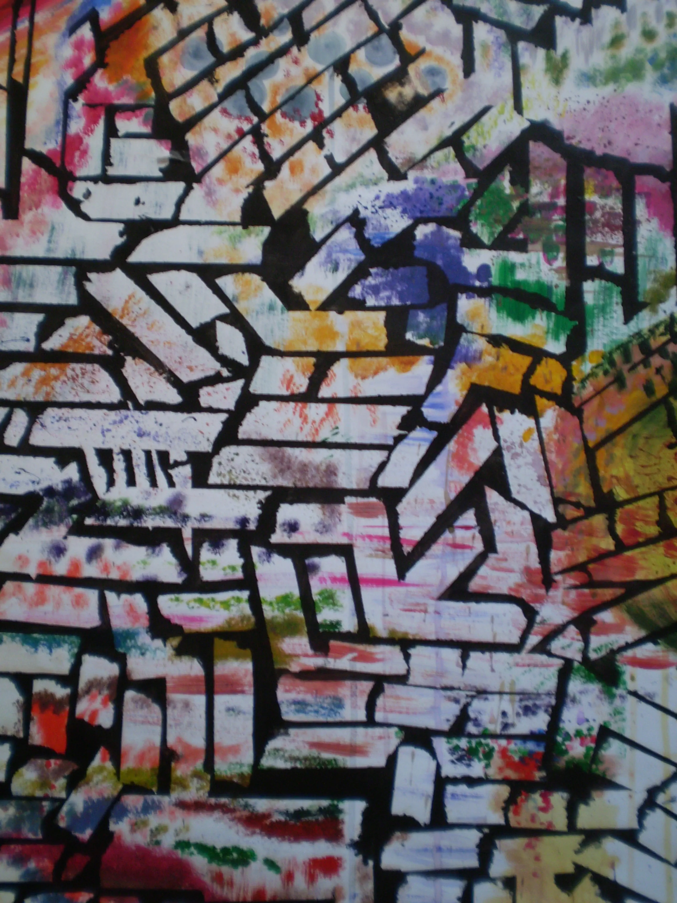 המלבנים השחורים מזכירים לי מרצפות רחוב כשיורד גשם... והמלבנים השחורים בצד שמאל מזכירים לי פתח ניקוז...