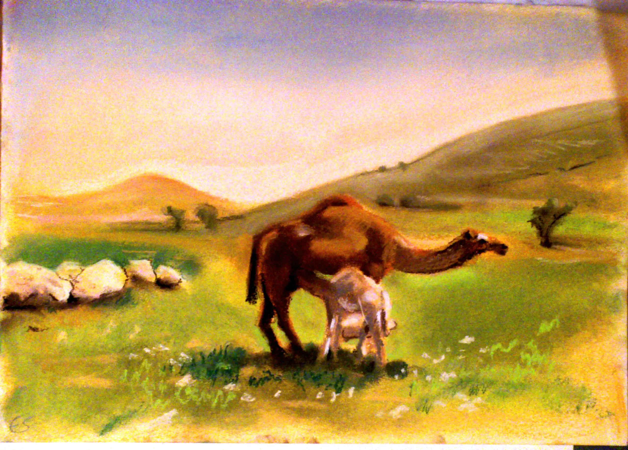 צבעים נהדרים נראה כמו מאיזה תקופה קדומה תנכ"ית בעיקר בגלל הצבעים. עבודה יפה בפסטל.