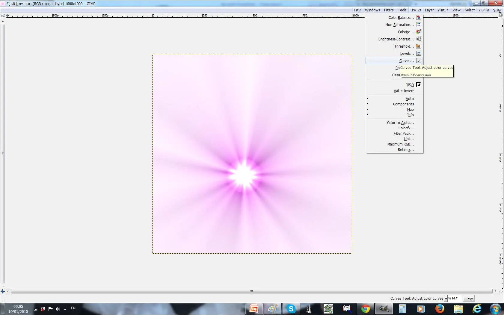 לאחר שיצרנו את הסופרנובה , נלך שוב לשורת התפריט למעלה ונבחר בצבעים ( colors ) ובעקומת צבע (curve) .