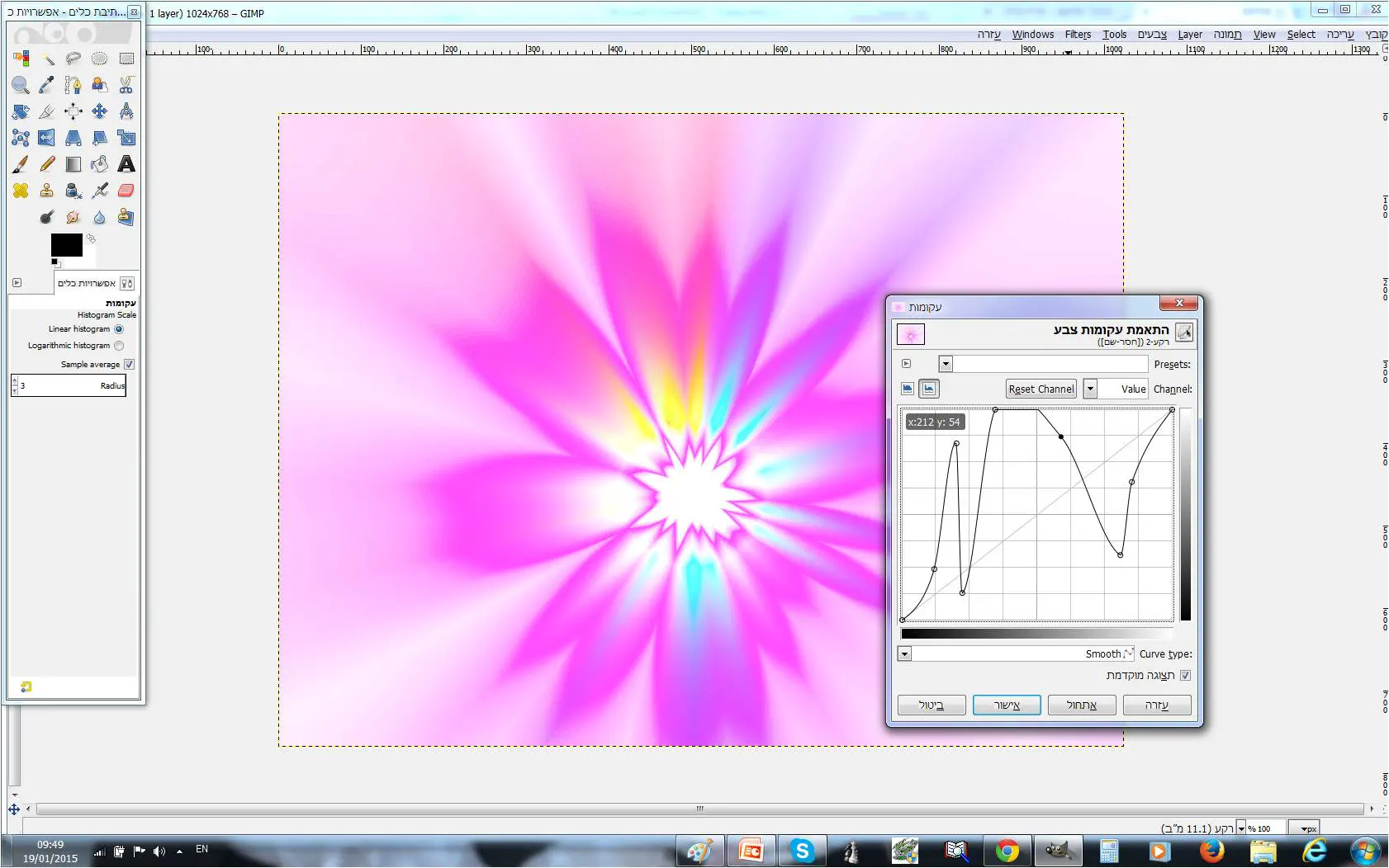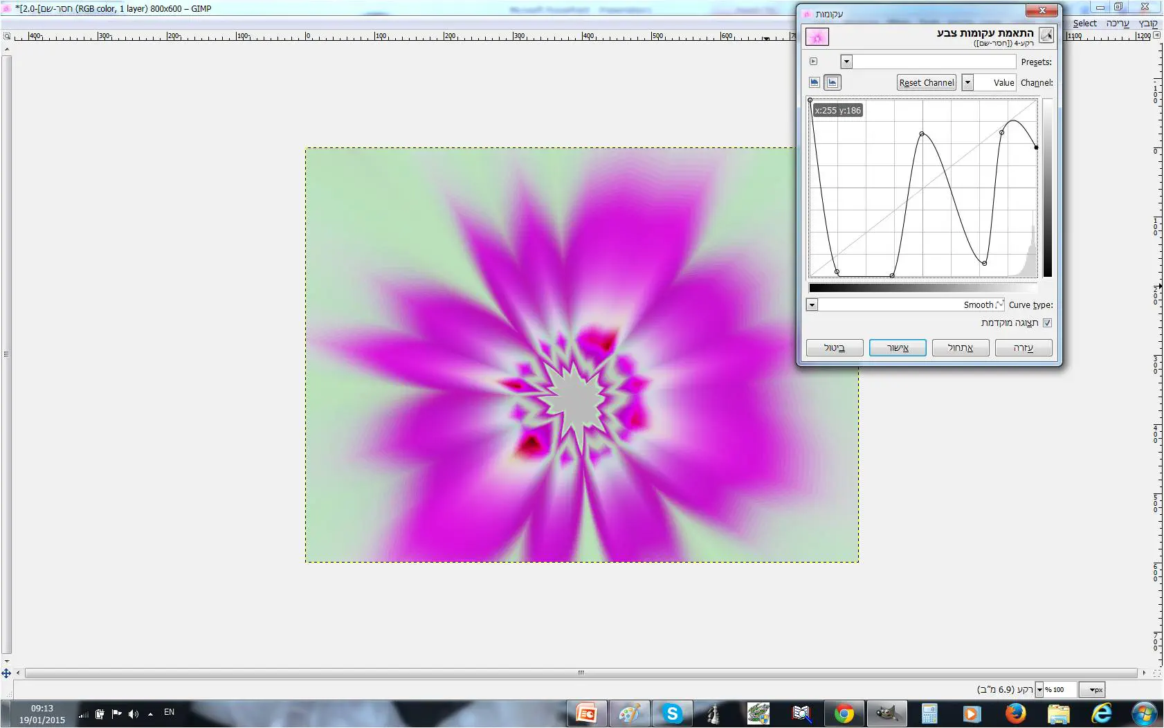 בעקומת צבע ניצור גל של פונקציה עם 2-4 נקודות מינימום ומקסימום עד שנראה בתצוגה שיצרנו את הפרח הרצוי ונלחץ על אישור.