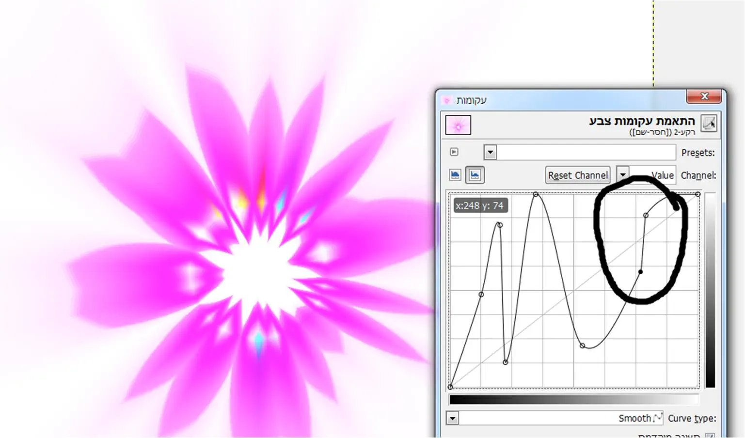 חשוב שהעקומה הכמעט הכי ימנית תהיה די גבוהה כדי ליצור סוף וגבול לעלי הכותרת ולא שהפרח ימרח וימשך על כל המשטח ושהנקודה משמאלה תהיה מתחתיה ולא לצידה