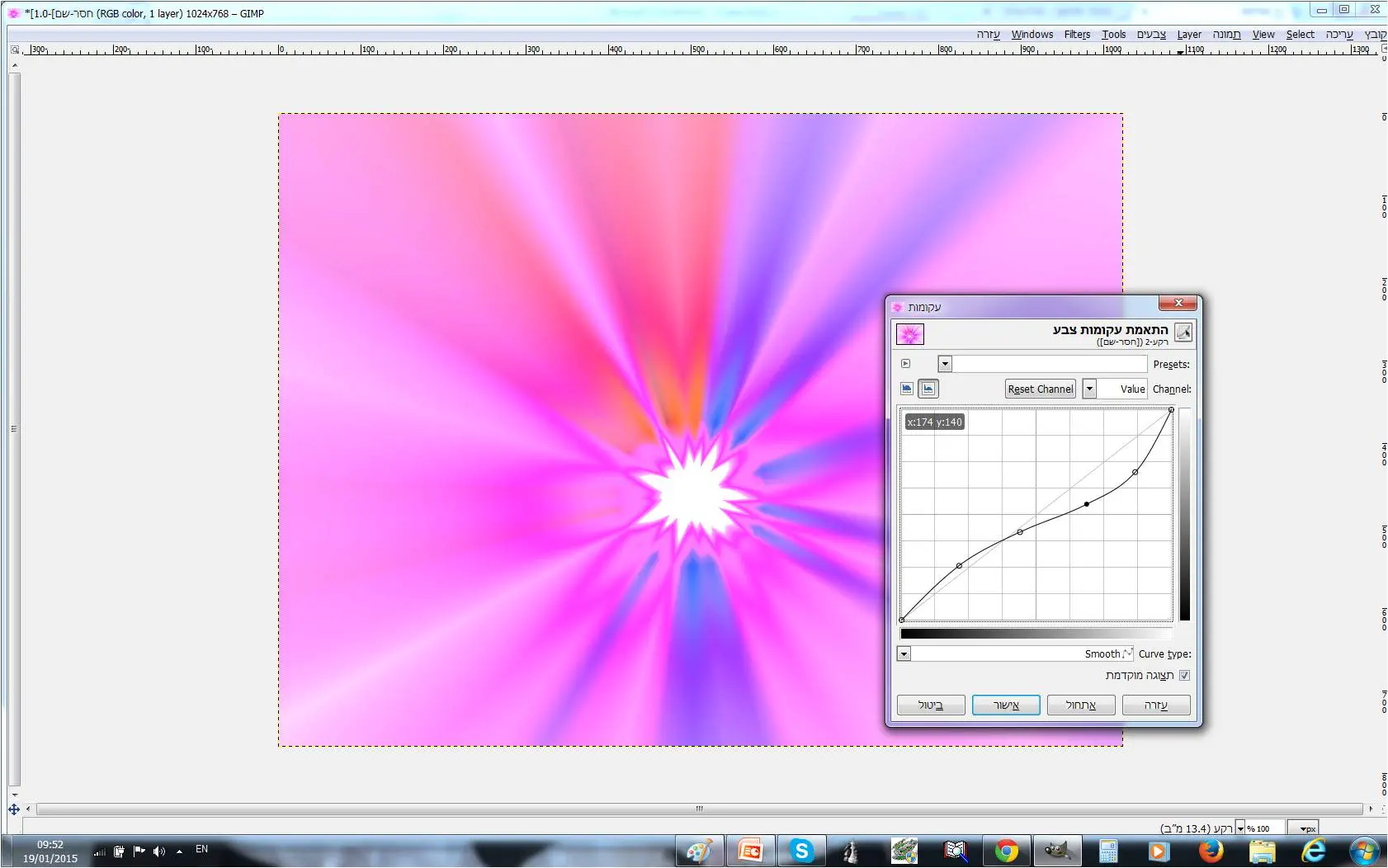 לפי הצורך- נחזור על הפעולה עקומת צבע מספר פעמים כדי להגיע לצבעים המתאימים , ניתן להשתמש גם בלחצני צבע colors אחרים ואחר כך שוב בעקומה עד להגעה לצבעים הרצוים לפי הטעם.