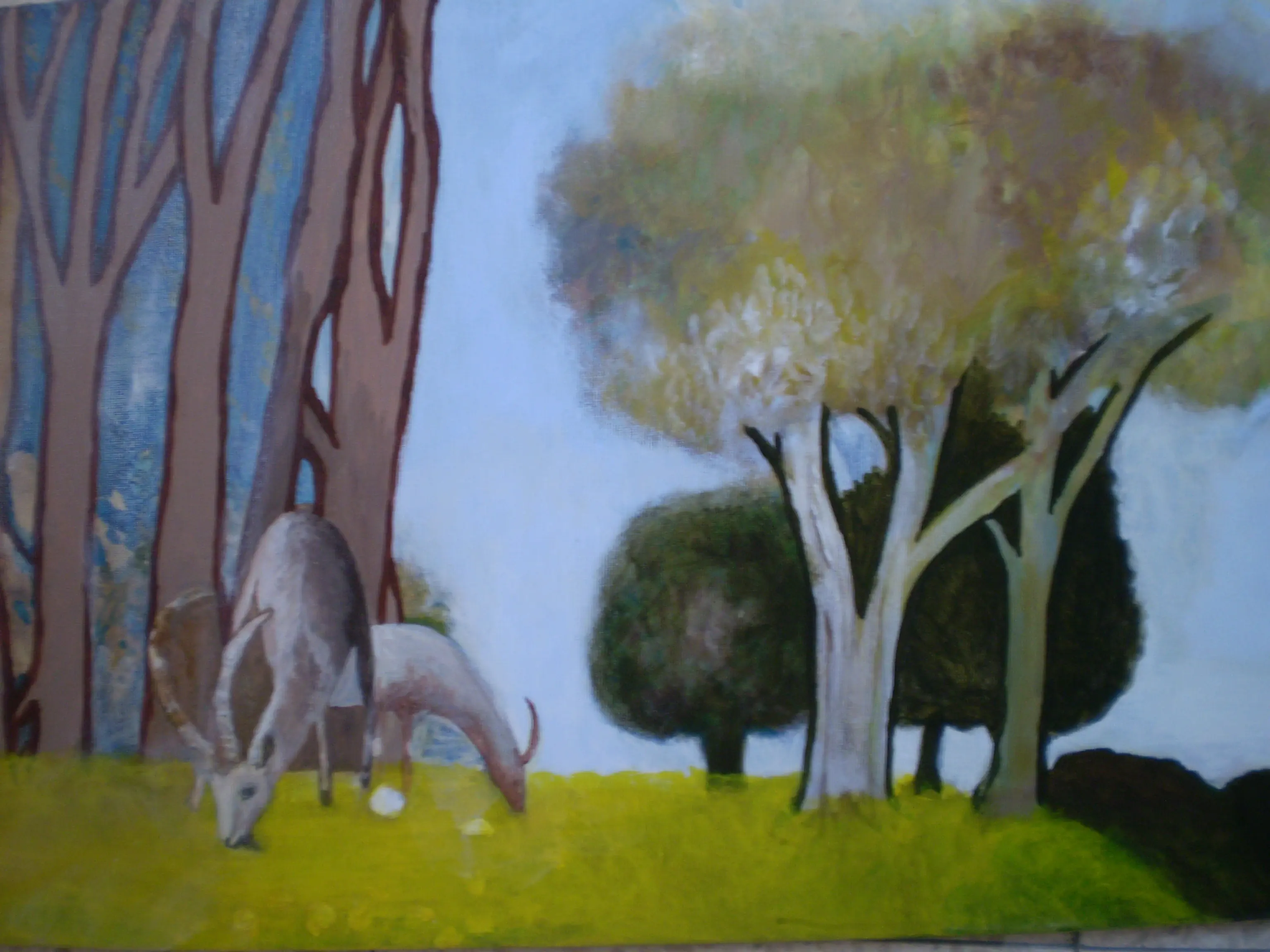 קווי המתאר מעט מציקים לרצף ויוצרים תחושה של ציור ילדים. ומעבר, הציור יפהיפה! הצבעים מהממים. גם העבןדה איתם בעצים ובגדיים. מהמם.