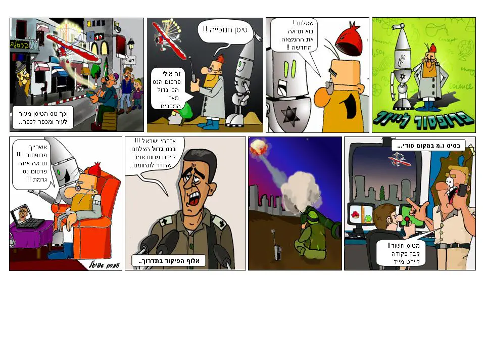 רק הפריע לי שבמשבצת השנייה הרובוט נראה כועס כשהפרופסור אומר לו שיש לו המצאה חדשה..