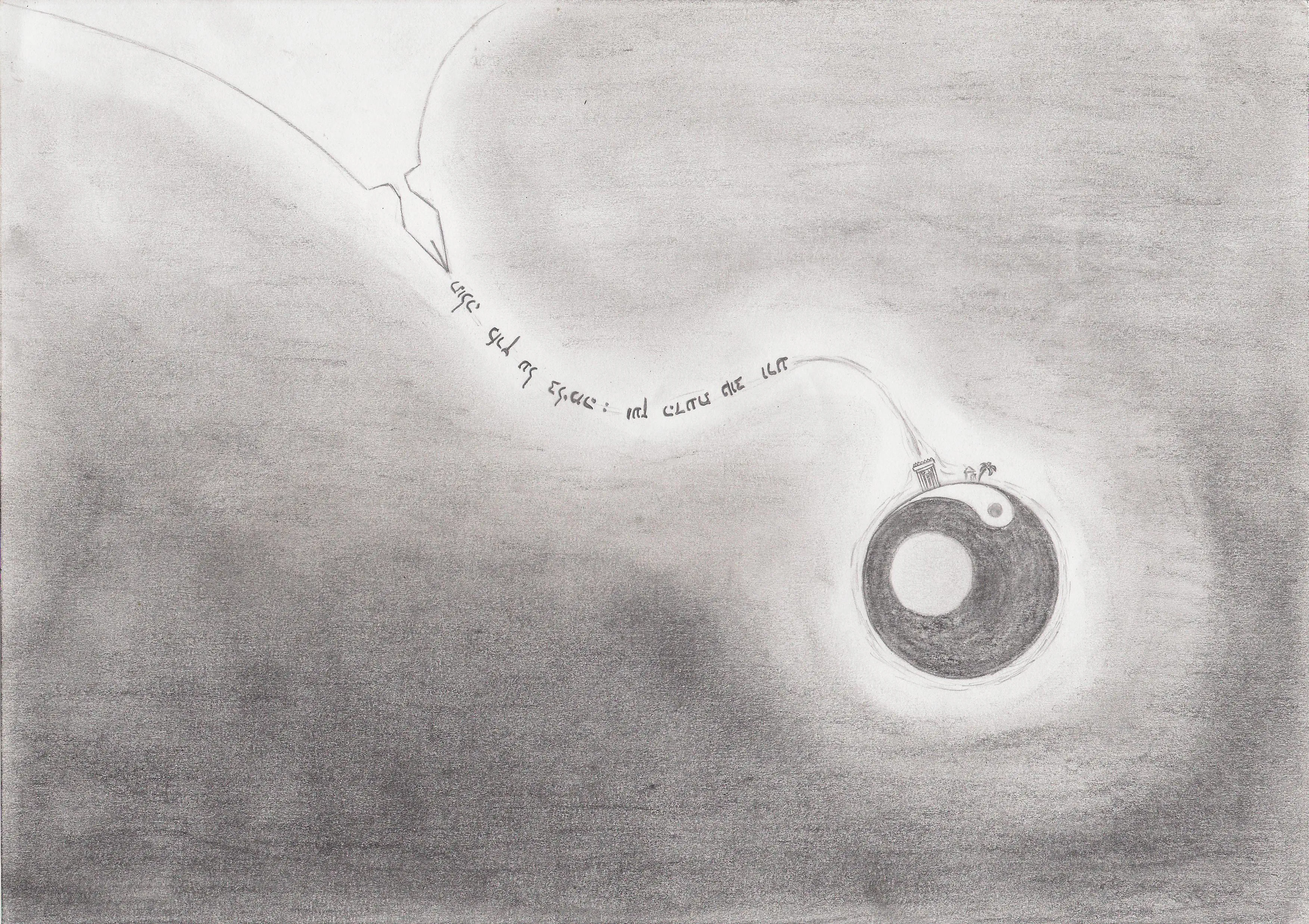 בזמן האחרון התחלתי לצייר את הסימן הידוע של הסינים, ה"יין-יאנג". היו לי כל מיני חששות לגבי זה כי זה לא סימן כ"כ יהודי; היהדות כן מאמינה שיש טוב גמור שאין בו רע, ורע גמור שאין בו טוב. עד שנזכרתי שבספר התניא (להבדיל) כתוב על 'קליפת נוגה' שיש בה טוב ורע והיא ענין העולם הזה. אז הנה, יש משהו ברעיון הזה של הסינים.. אך כשראיתי את התניא לא מזמן עוד פעם ראיתי שעדיין זה לא אותו רעיון. שם כתוב עליה ש"רובה ככולה רע, רק מעט טוב מעורב בתוכה" (פרק ז'). אז החלטתי לשנות את הסמל שלהם ולהפוך אותו ליהודי..