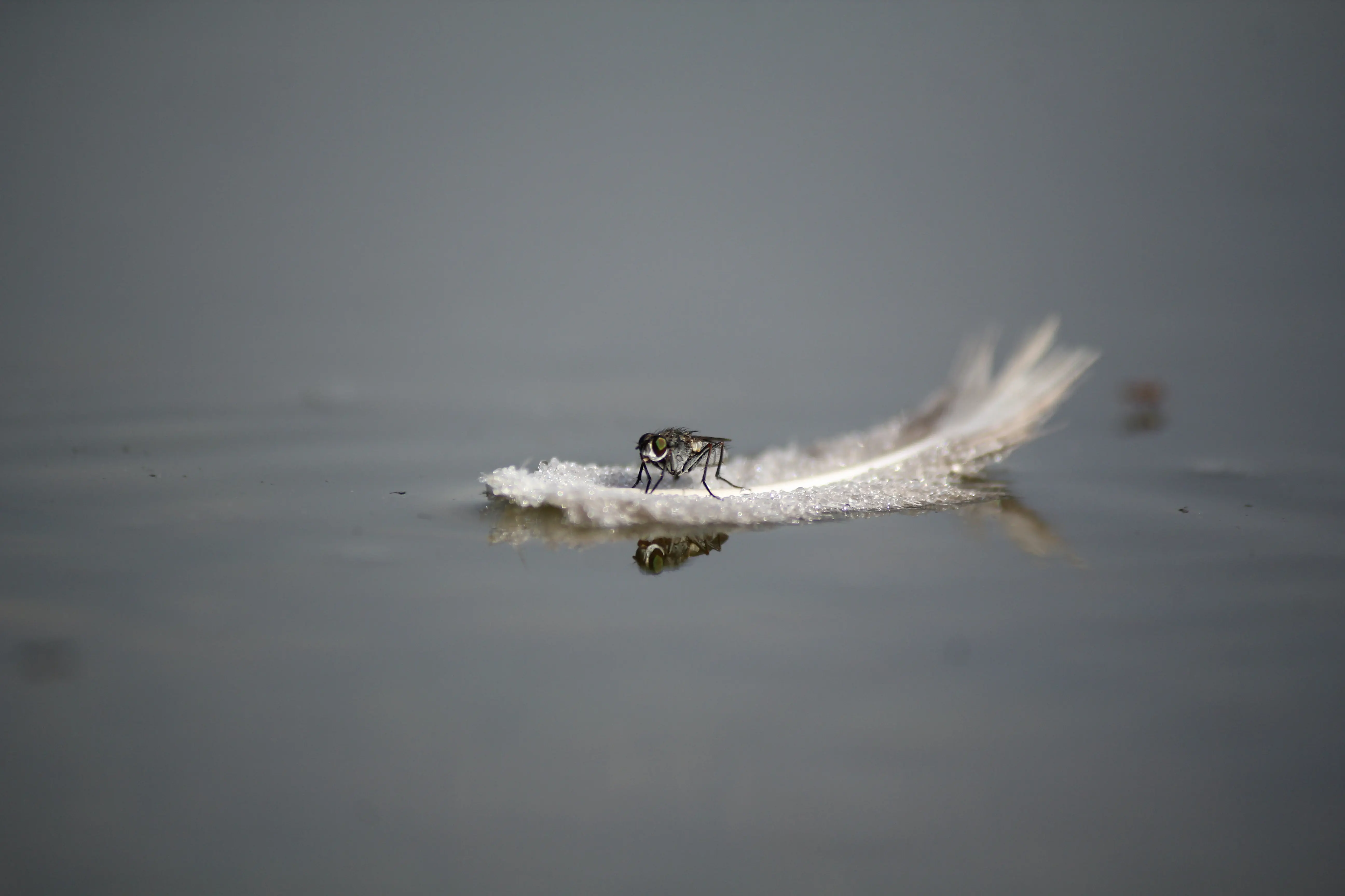 התמונה נראית גם כספינה ששטה במירות בים (יותר כאופנוע ים) ובעצם היא יתוש על נוצה..