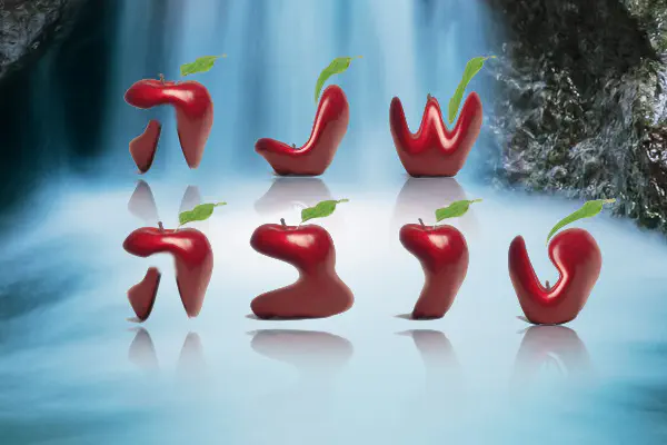 בג'ימפ... לקחתי תמונה של תפוח, שכפלתי אותה ועשיתי לכל תפוח בפני עצמו את האפקט IWarp והפכתי אותו לאות, הוספתי השתקפות ורקע מתאים וזהו...