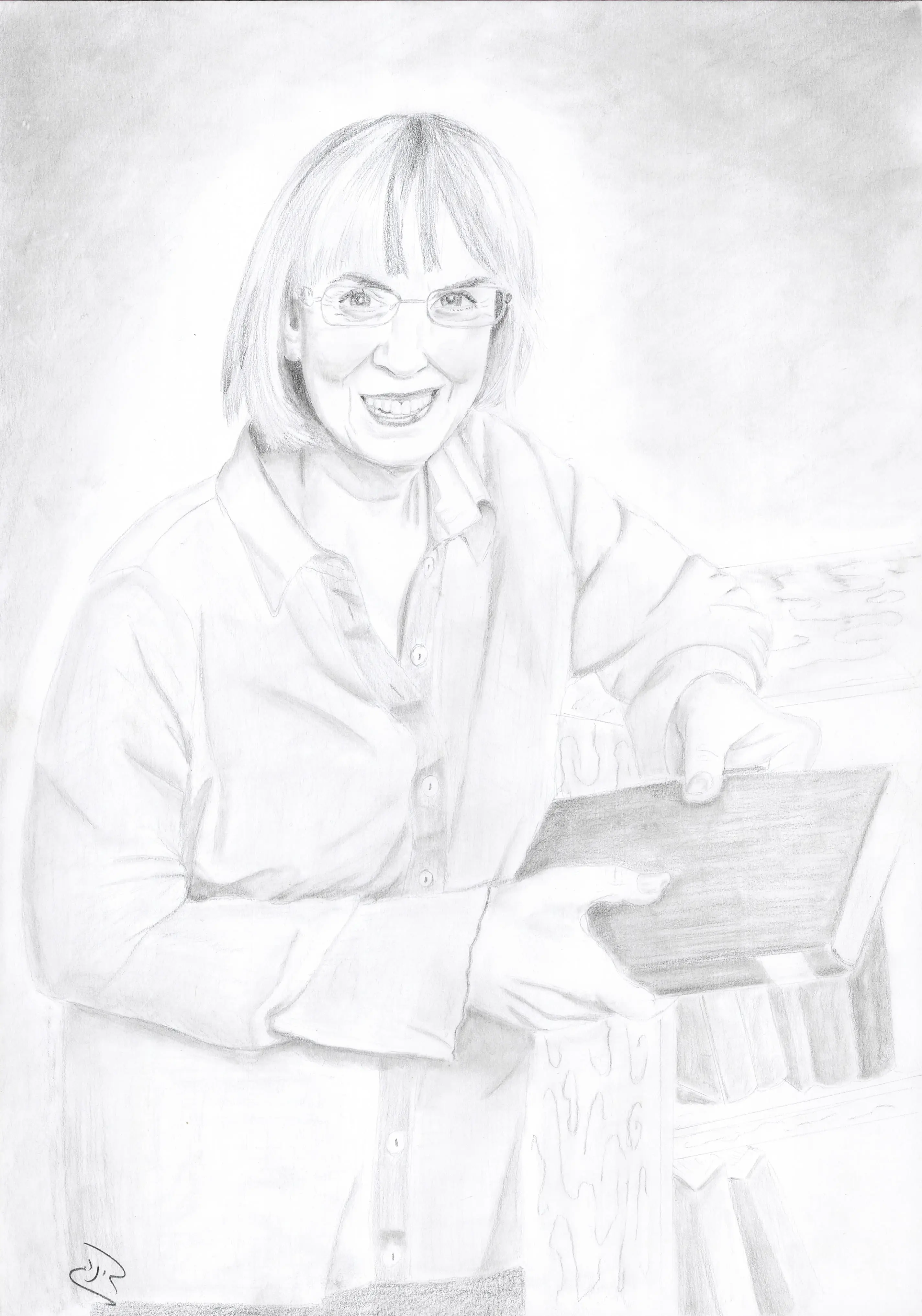 סבתא מאושרת עם חיוך מקסים. גם העיניים שלה מחייכות איך אפשר לתאר תחושה במילים? הרישום נותן תחושה כזאת כאילו עוד רגע הדמות תתחיל לצחוק ולדבר איתך. וזה מדהים איך כל הדברים מסביב יוצקים את התוכן לדמותה. והיא כל כך קורנת. עלי והצליחי!