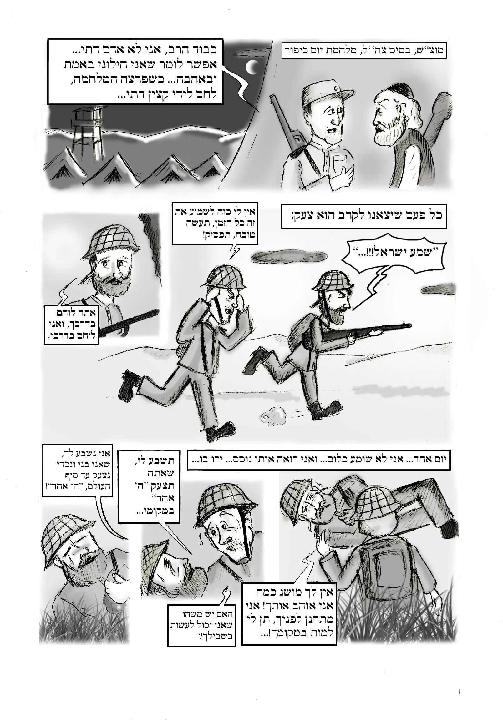 דבר ראשון יצא לך ממש יפה ולדעתי עשית את העבודה הכי קרובה למושלמת שאפשר (כי לגמרי מושלם אי אפשר) ובכל זאת לדעתי זה סיפור שאי אפשר להכניס לקומיקס או לפחות לקומיקס קצר ישר כוח
