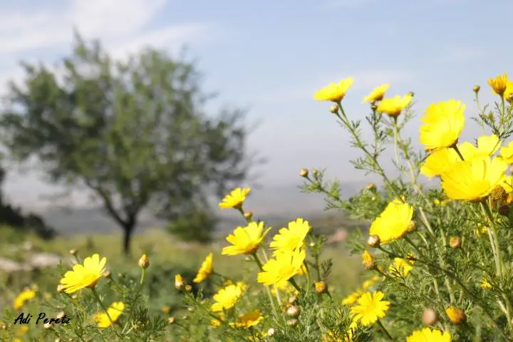 אם היית עוברת את הפרחים הצהובים ומצלמת את עץ הזית על רקע המרחבים המדהימים מאחוריו התמונה הייתה שווה מאוד! ( הייתי שומר את עץ הזית בפינה השמאלית ודואג שהוא לא יהיה חתוך)