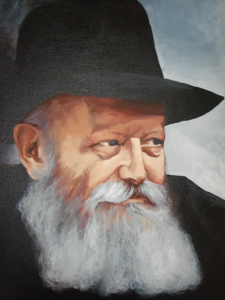 ציור באקריליק של הרבי מלובביץ לפני 10 שנים.