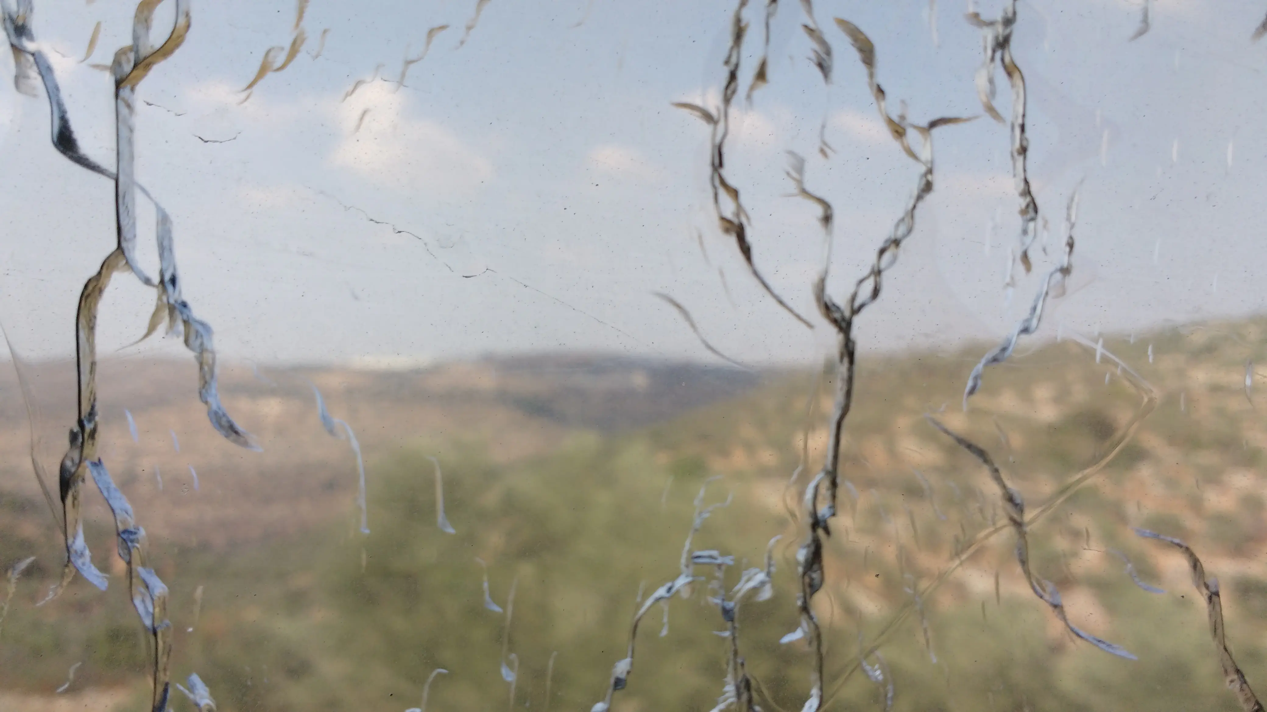 תמונה זו צולמה דרך חלון מנופץ של אוטובוס ממוגן בבנימין.