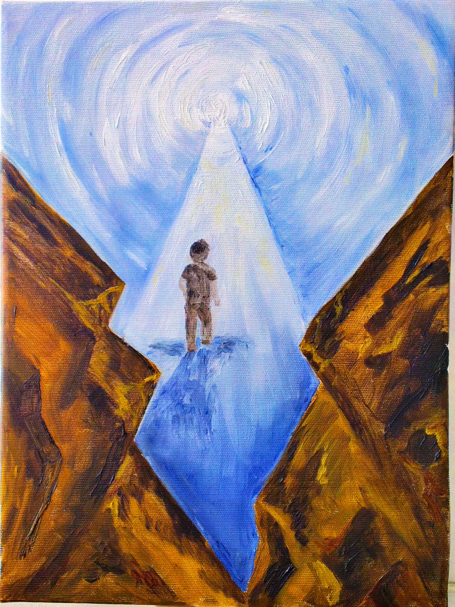 התמונה מבטאת את הדרך אל הטוב שמגיע אחרי השבר והקושי, ואת ההשגחה של הקב"ה שמורה לנו את הדרך קדימה אל הטוב. אחרי הנסיון- השבר והקושי שמבוטאים בסלעים הכהים השבורים והקשים, יוצא שביל מאיר- שאם האדם בוחר לצעוד בו הוא יגיע אל הטוב והאור. הבחירה החופשית שיש לאדם אחר השבר- כל כך גדולה, שהוא יכול להפיק ממנה טוב אינסופי. ה"מנהרה" מלמעלה ומסביב מבטאת ההשגחה והבטחון שהמנוסה מרגיש, שעוטפים אותו מכל כיוון ונותנים לו ארשת בטחון. הוא צועד קדימה אל העתיד, בידיעה שיש לו מקום טוב שהוא מובל אליו..