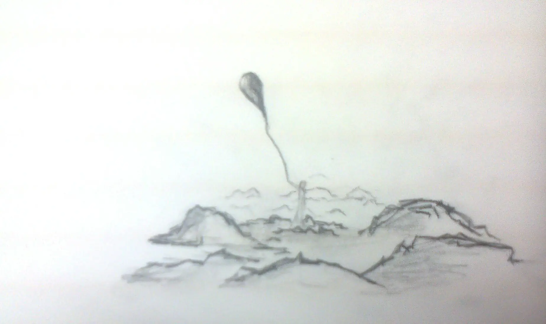 טיפה נפוחה עולה כלפי מעלה ומשכת מטה בחוט שמתחבר לאדם אדמה או שאולי זה עננים?