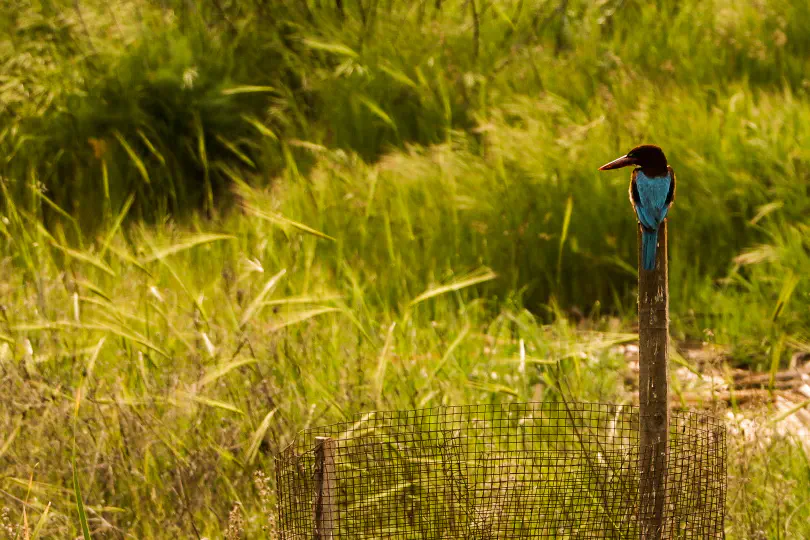 הכותרת מעולה. הצבעים, הציפור, הגדר, העומק