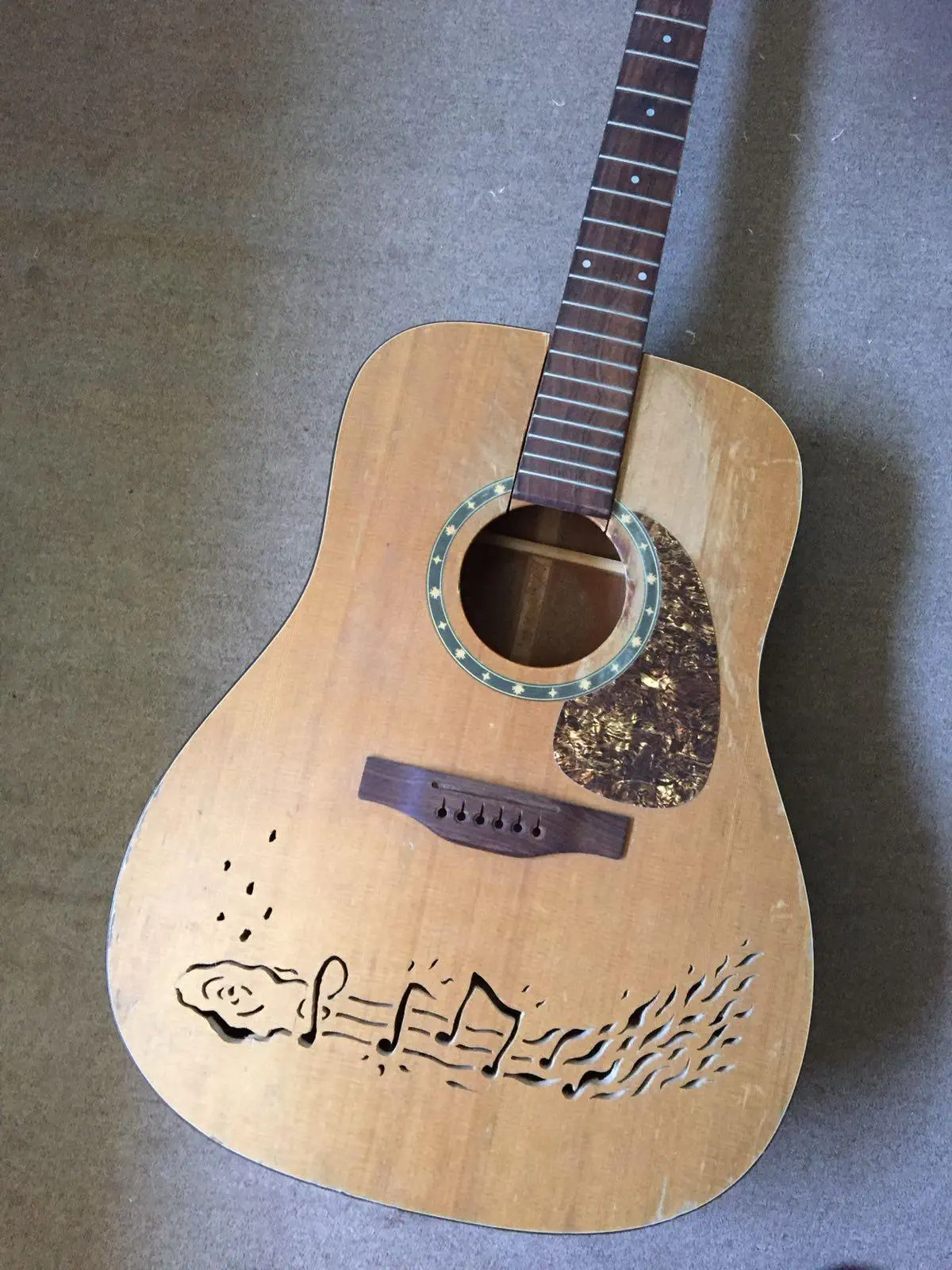 חתכתי את כל המשטח העליון, את הציור חתכתי עם מסור נימה, והדבקתי את המשטח בחזרה.
