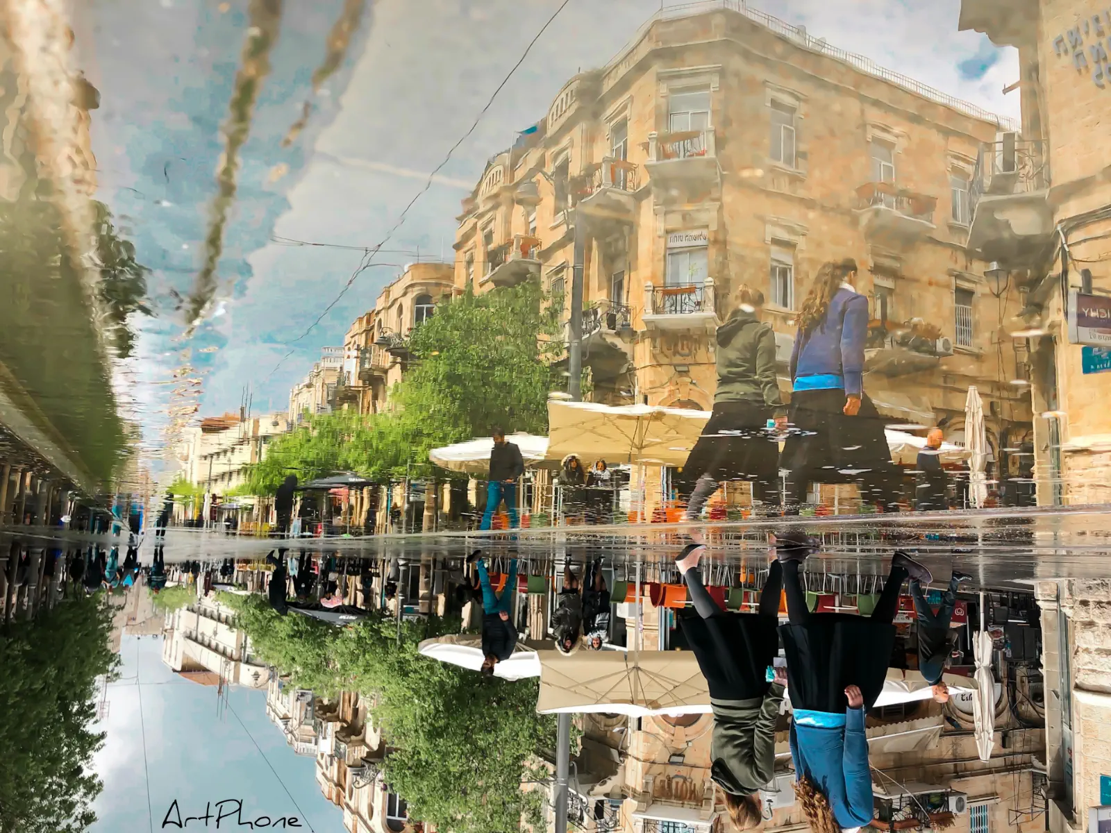 שמרתי על "חוק השלישים, והפכתי את התמונה.(צילמתי שלולית ממש קטנה ליד כיכר ציון בירושלים