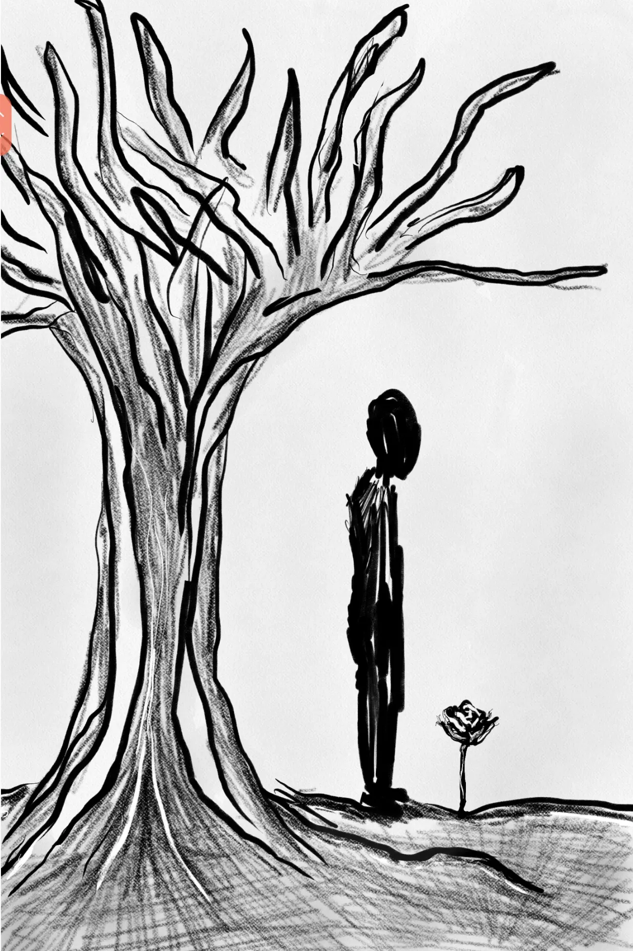 תודה על המינימליזם הזה. וכמה חיבוק שלחת לו, עם הפרח שבא לקראתו, בודד באדמה אף הוא.