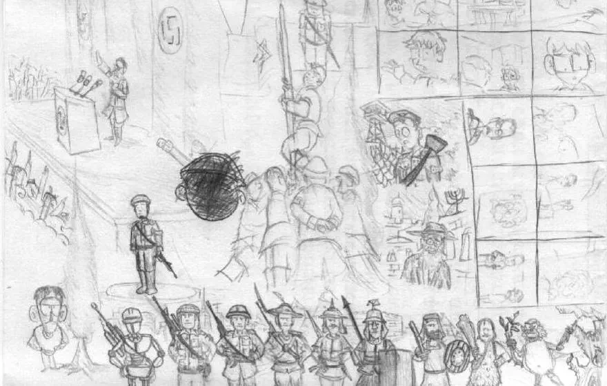 חשבתי לתת לזה שם אחוות לוחמים ככה שהיו יותר מתמקדים בזה ולא בציורים שמסביב אבל בסוף החלטתי לקרוא לציור בשמו האמיתי