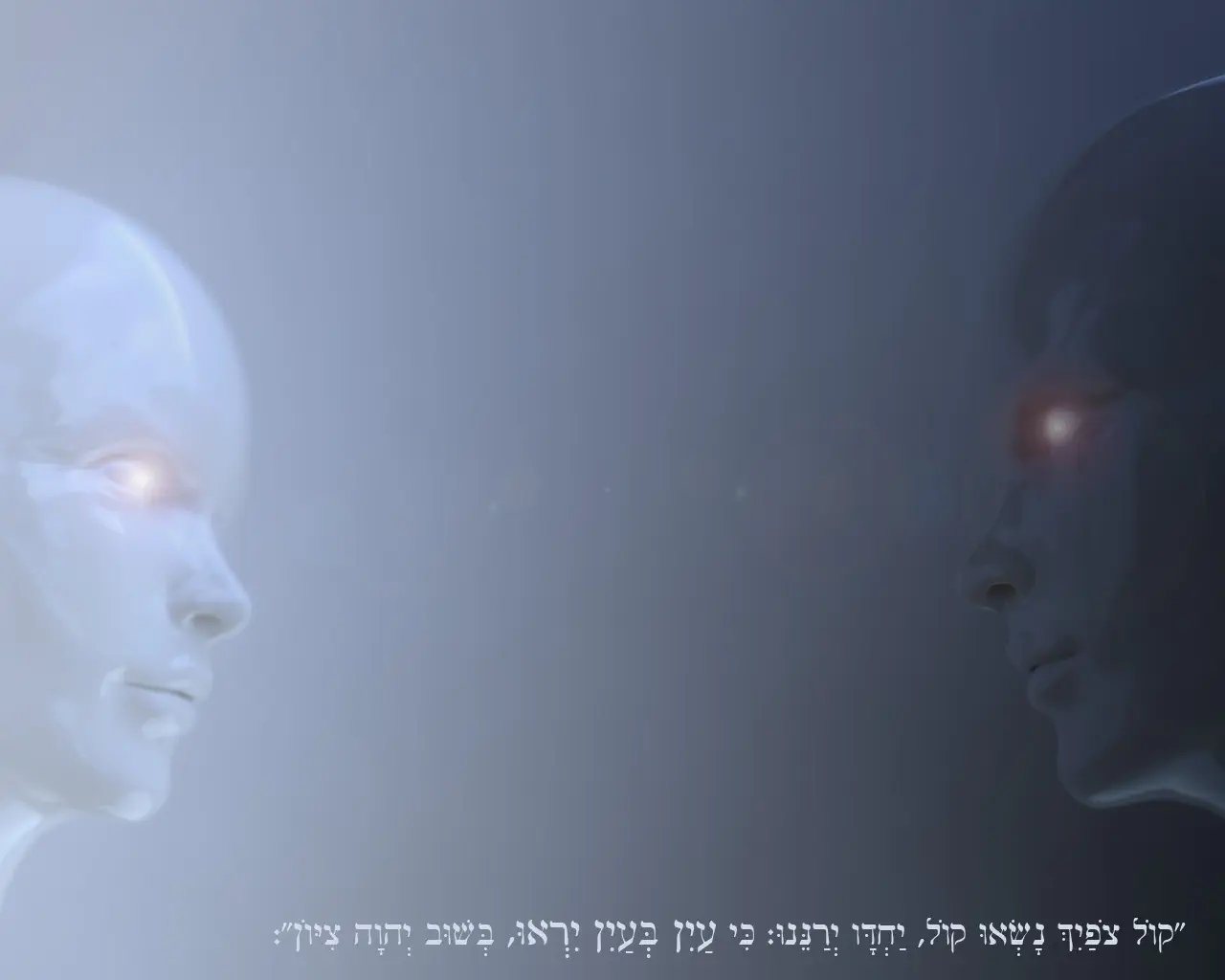 איש אחד נמצא באור, הוא יודע, הוא מבין, הוא רואה למרחק בצורה בהירה, לעומת שאת השני נמצא במחשך, באפילה גדולה. וגם הוא מצליח להביט בעינו של המואר. נכון, הוא עדין שקוע בשחור, אבל יש לו נקודת איזון עם האינסוף המואר.