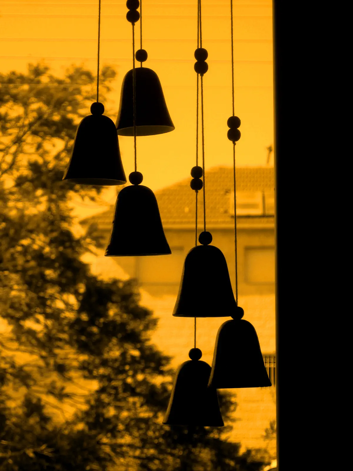 מה שמאוד אהבתי זה המשחק של קוי רוחב ואורך. החלק השחור והחוטים של הפעמונים לעות החוטי חשמל והרעפים.