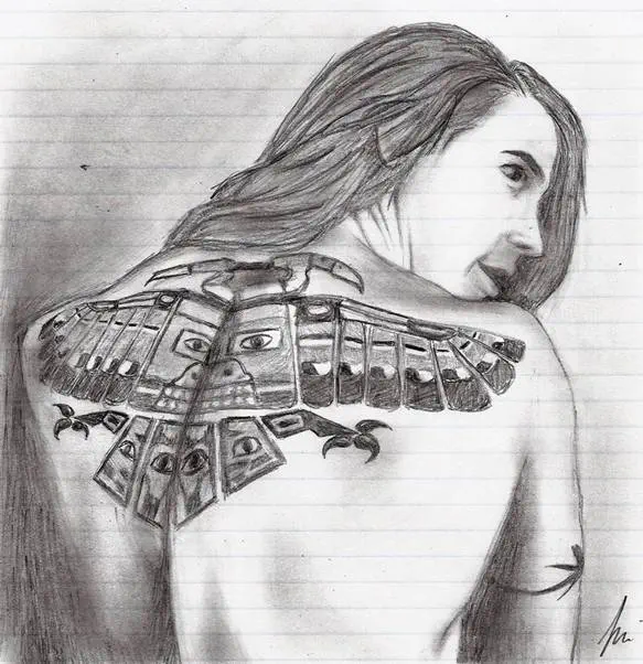 משהו בגב גם מעיק. הקו באמצא נותן הרגשה שחתכו אותו או משהו... או שהקו לאורך הגב הוא חלק מהקעקוע? אבל הוא נראה הצללה...