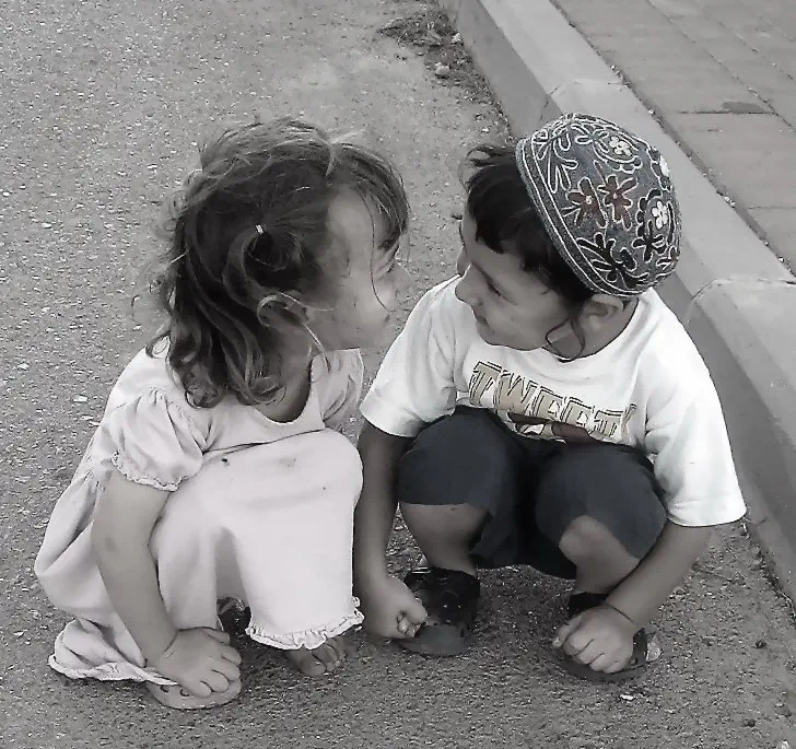השחור לבן וקצת צבע על הנעל* של הילדה וגם על הכיפה והחולצה של הילד...