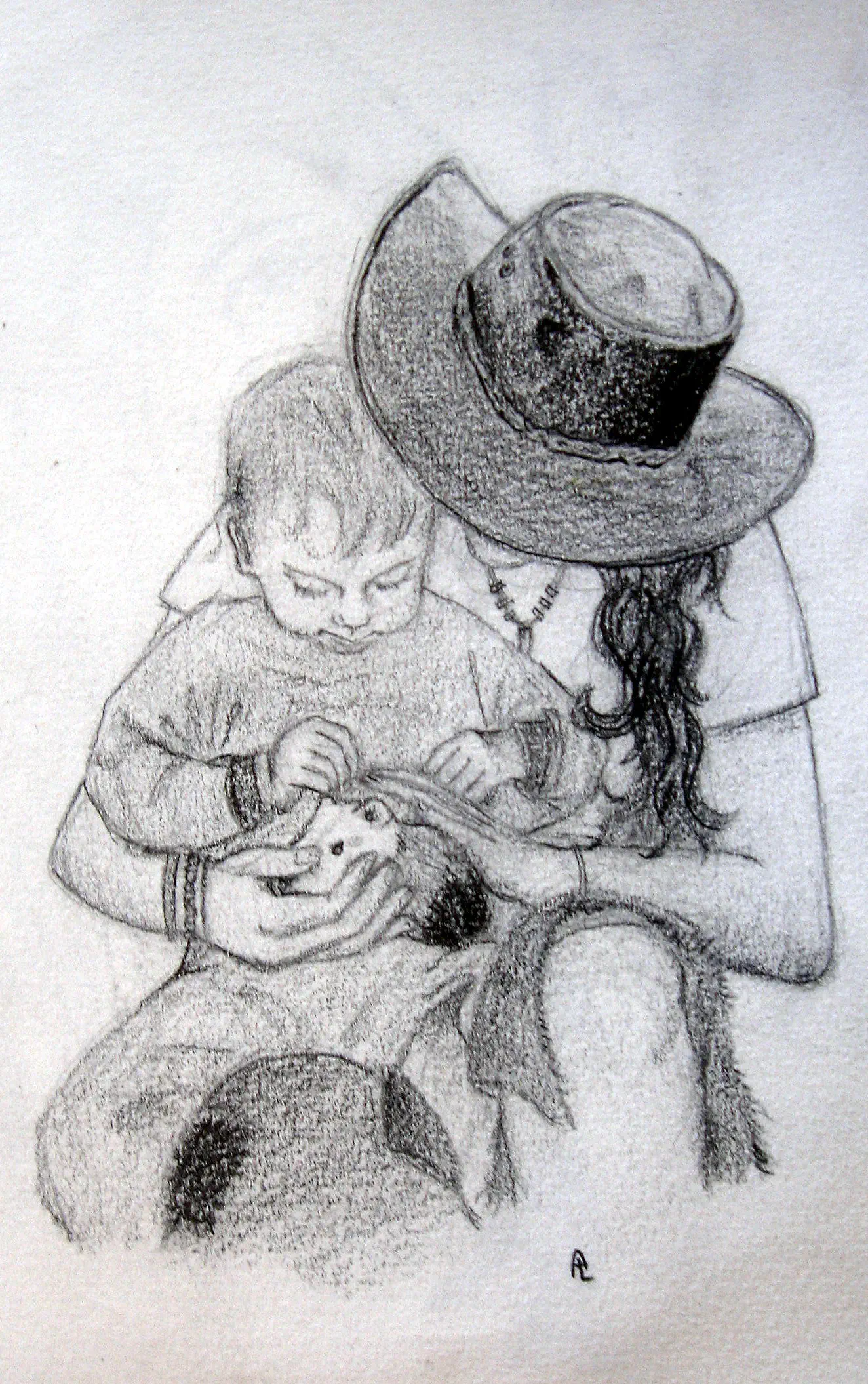 יפה ואמין מאד! אהבתי את איך שהראש בולט מתוך הכובע (מלמעלה), את השיער שלה, את הישיבה של הילד על הברכיים ואת כל הפרטים הקטנים (הציפורניים שלה, השרשרת, הקישוט על הכובע וכו') שמוסיפים מאד לאמינות.