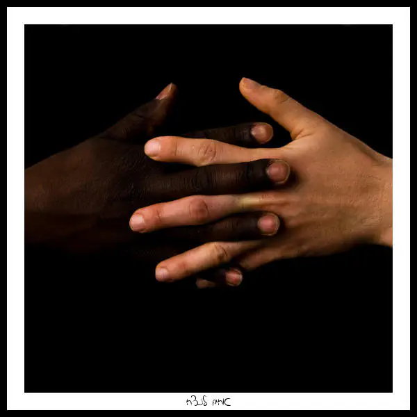 יד אחת שחומה ואחת לבנה.