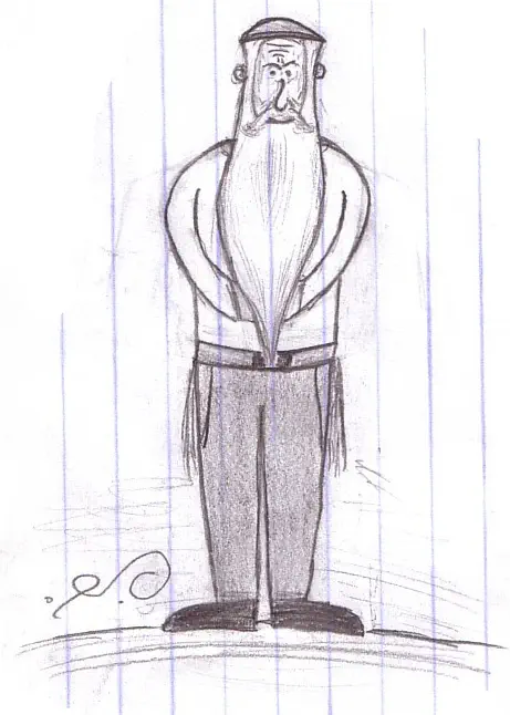 אם כי אני רוצה להעיר כמה דברים על גבי קודמי...(ומתוך כך לצייר עצמו - אנא ראה זאת כאישית גם) לפי הבנתי הזעירה אין נראה דהאומן ניסה לצייר ציור ראלי פחות או יותר . אלא מן סוג של כל שהיא...אמממ- פרופיל כל שהוא של ראש ישיבה מדומיין- בקריקטורה מסויימת ... או אולי קצת מופשטת - לכן - לא נראה לי שאבישי חייב לתקן ת'ידים... (או לשפרם בעתיד... [שסובר אני שאין צורך לעשות זאת במיקרים הנ''ל - או בדומה להם - שהם בחינת סגנון {אם כי משונה - שעדיף לתקנו...} וברגע שבחר לו לסגנון - זה כבר בעיה שלו... אך זוהי לא טעות - אלא מתוך בחירה אומנותית מסוימת..])... אבל אם לא כך הדבר ... אזי חייב זריז לשפר דבר זה בעתיד...