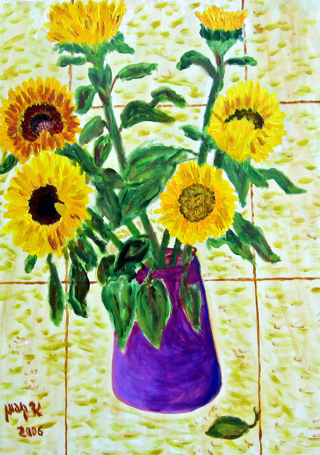 יתכן שראית התמונה, כי היא תלויה בביתם של עליזה ודרור. הפרח הכהה, זה מה שהיה במודל שעמד מולי,יש פרחים שמתבלים ומתעותים לפני האחרים, סמלי לחיי אדם.גם לעלה שנשר יש משמעות.