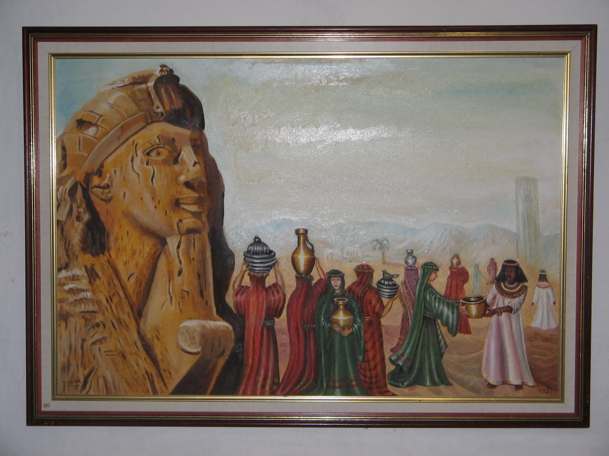 ברור שאת מוכשרת. הקומפוזיציה, הפרספקטיבה והצבעיוניות יפים בכל תמונותיך. בכל זאת רציתי לשאול, בשביל-מה הפסל הענק של פרעה? הרי מהתלבושות והכותרת הנושא כבר ברור. זה קצת מזכיר לי תמונות אקזוטיות שהיו נוהגים לצייר עד לפני כשבעים שנה. לא צריך לנסות להרשים.