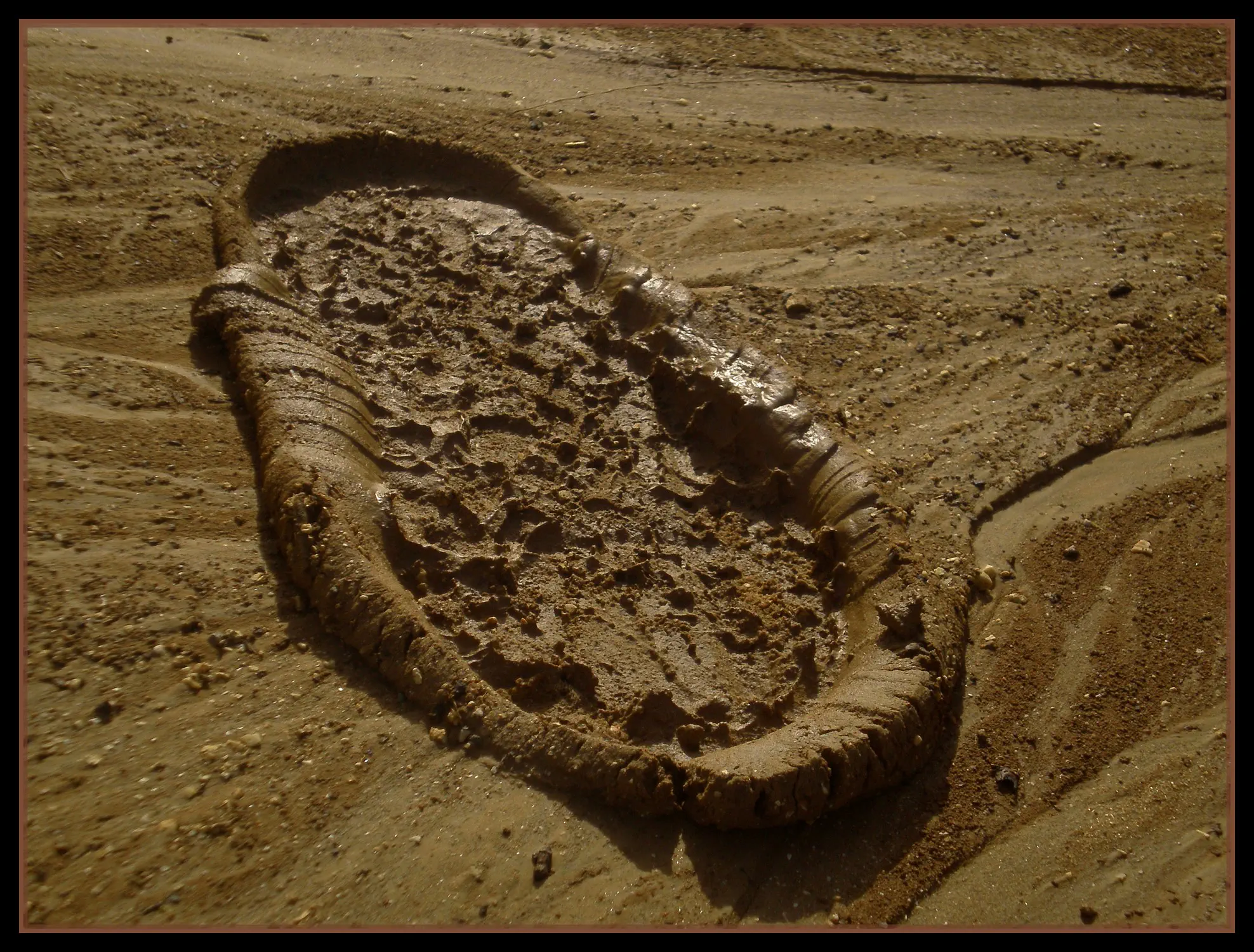 זה לא הרעיון של התמונה(הבוץ).... פשוט אם דורכים עם הנעל על הבוץ זה משאיר את החותם (וזה הרעיון של התמונה...)!!!!! ובקשר לתמונה- הרעיון חמוד ואהבתי את הביצוע :) :) :) !!!