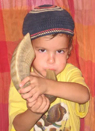 אחיין שלי מנסה לתקוע בשופר. (הוא גם הצליח...)