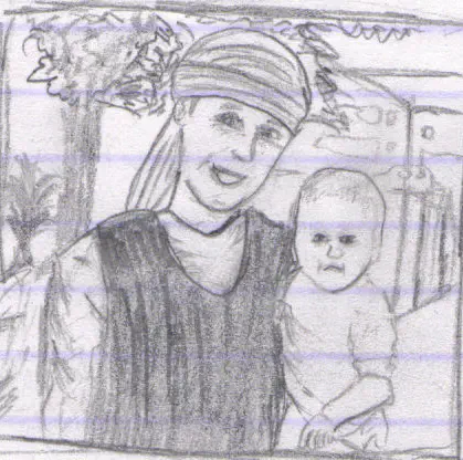 הסבר קטן - כל שנה אני מכינה לוח שנה למשפחה שלי, השנה בלוח הוספתי גם משפטים נחמדים של אחיינים שלי. החלטתי לצייר אותם, הנה אחד מהם כאן לפניכם. הצביעה ממש לא גמורה כפי שאפשר לראות, אבל מה לעשות שערב פסח עכשיו.. :) (וכל קשר בין הילד לאחיין שלי או בין אחותי לאמא המצויירת מקרי בהחלט.. :) )
